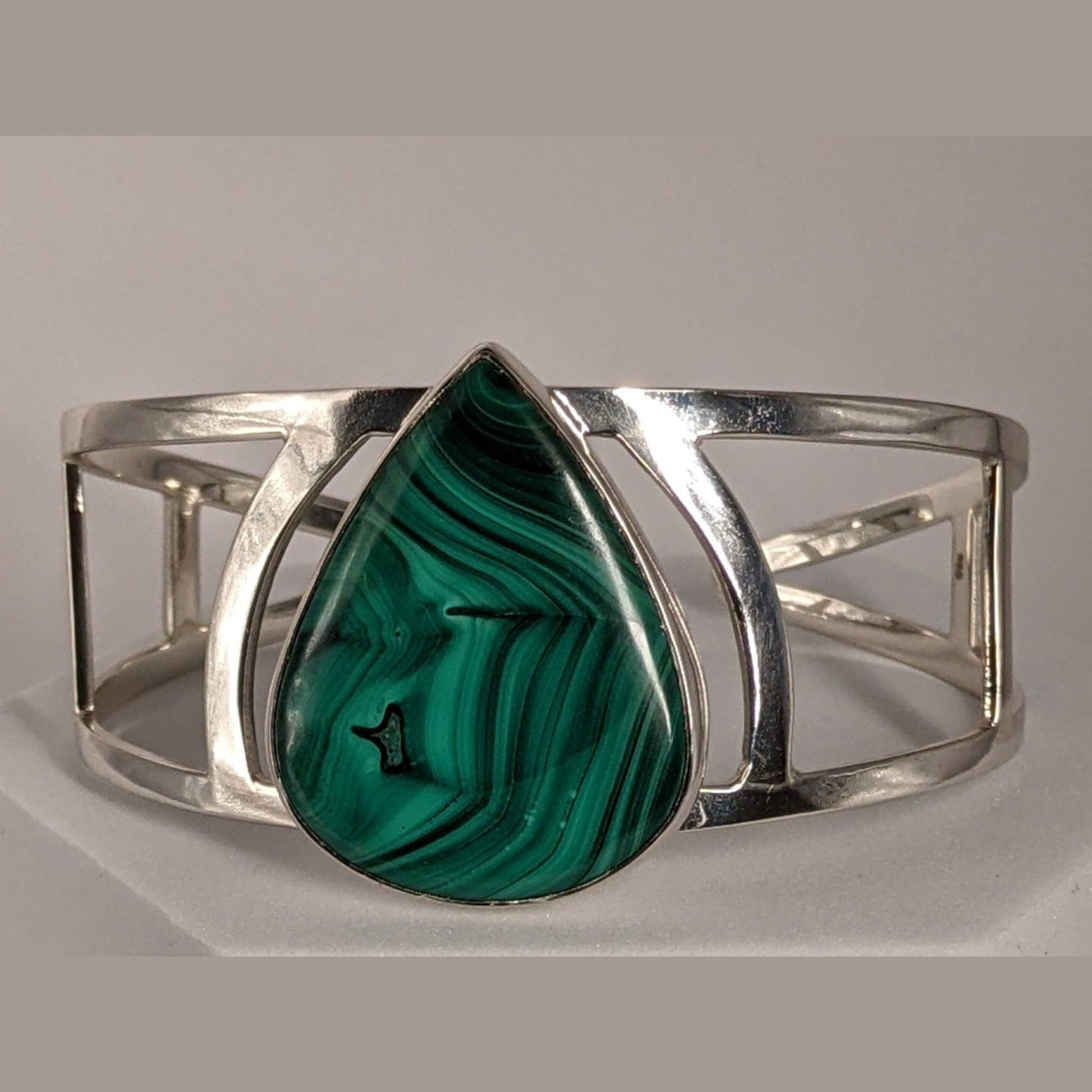 Malachite & Sterling Silver Large Teardrop Cuff Bracelet