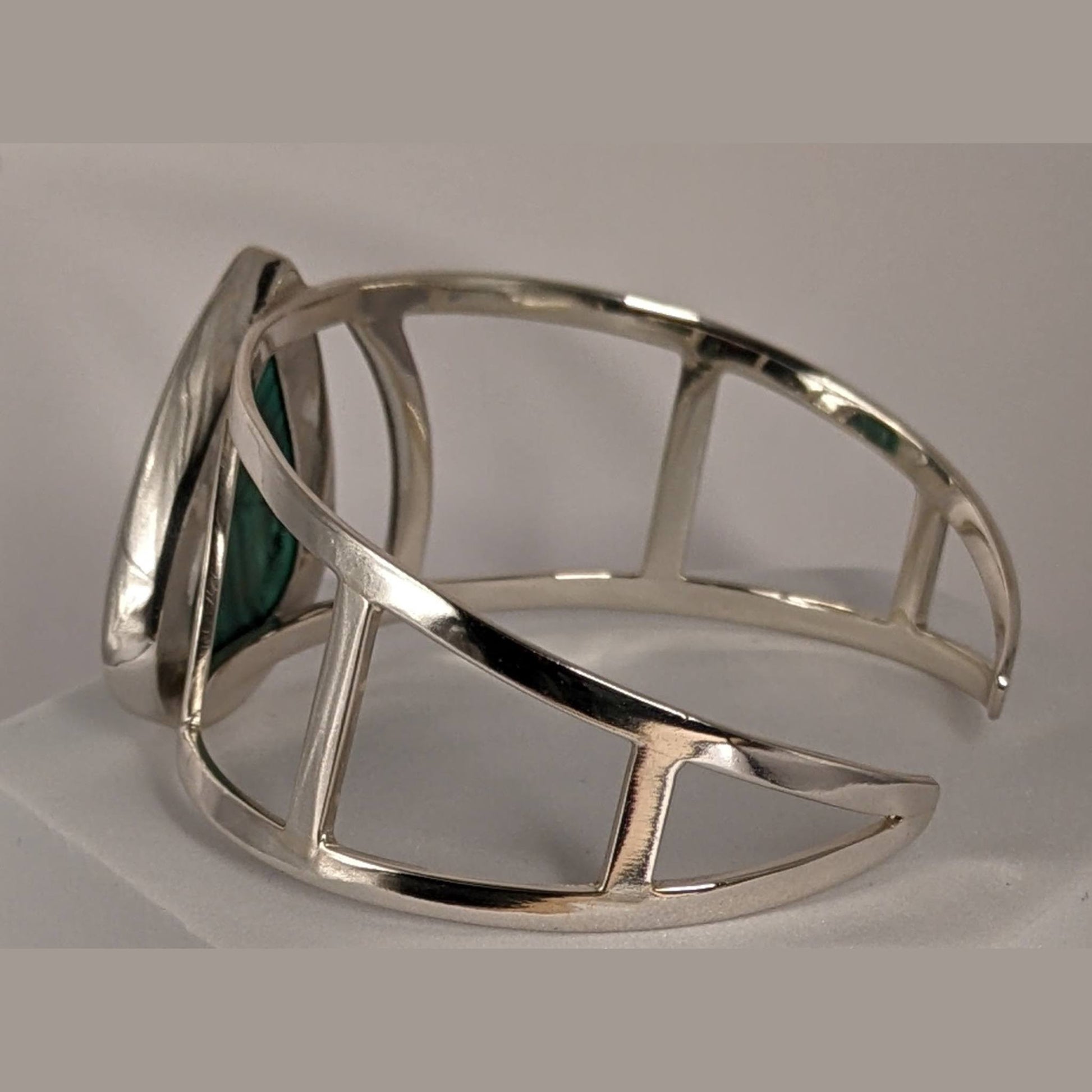 Malachite & Sterling Silver Large Teardrop Cuff Bracelet With Lines
