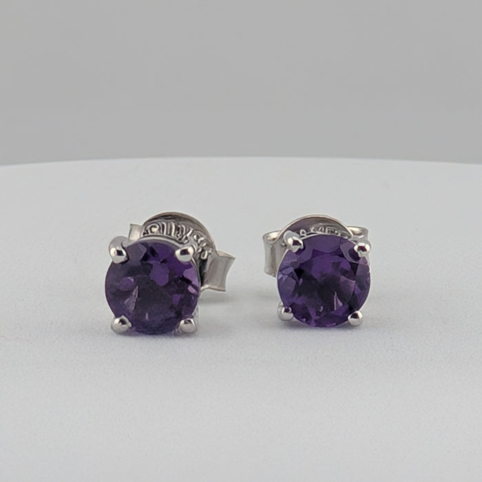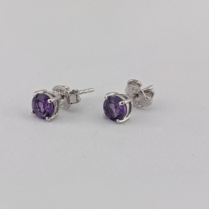 Diamond Cut Faceted Amethyst Gemstone & Sterling Silver Studs Earrings