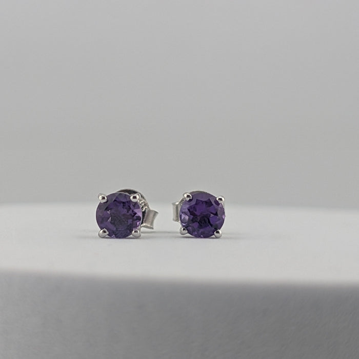 Diamond Cut Faceted Amethyst Gemstone & Sterling Silver Stud Earrings