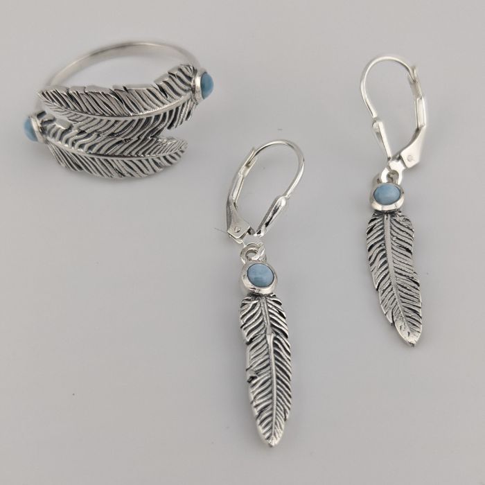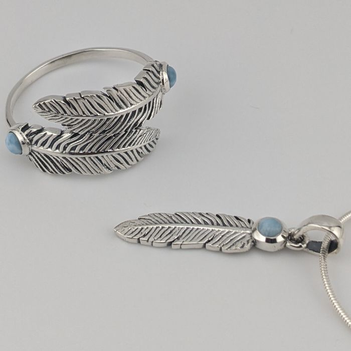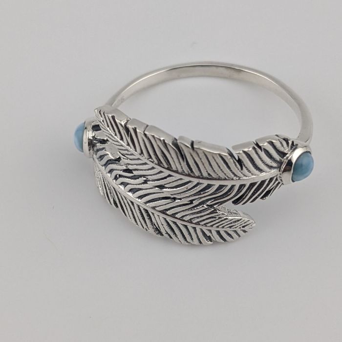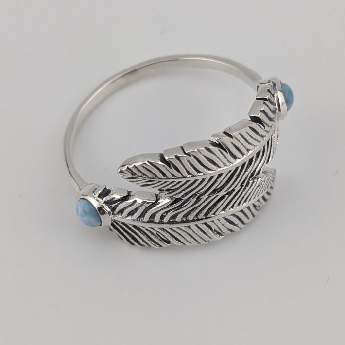Larimar and Sterling Silver Feather Ring
