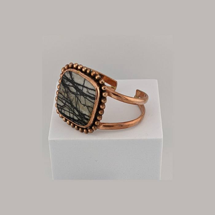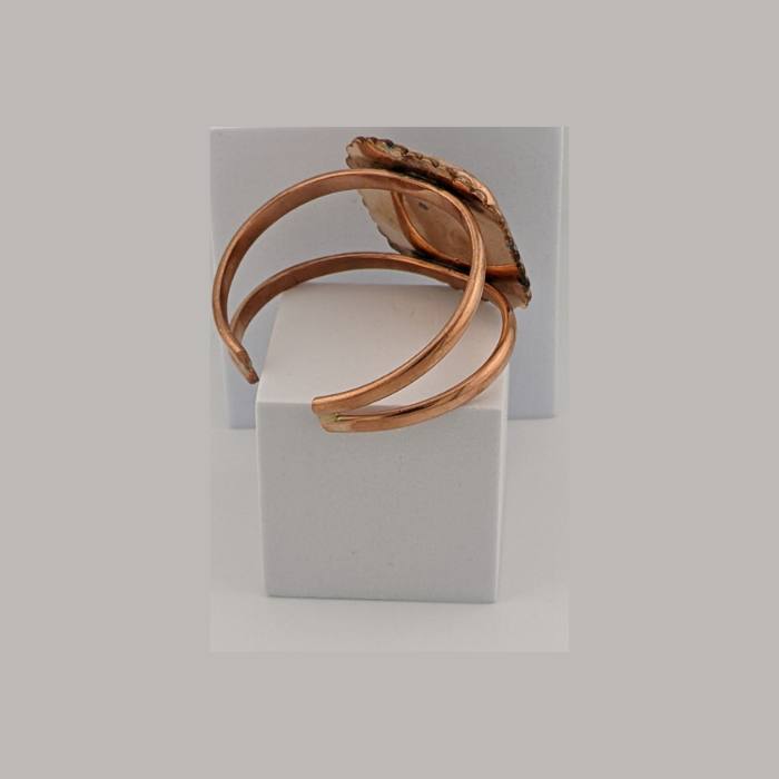 The copper cuff bracelet "Harmattan Winds" has stylish side openings and a beautiful 2x2" Black Rutile gemstone. You can embrace the mystery of the Harmattan Winds with every elegant wear thanks to this alluring fusion of copper craftsmanship and the appeal of Black Rutile. It oozes timeless luxury.