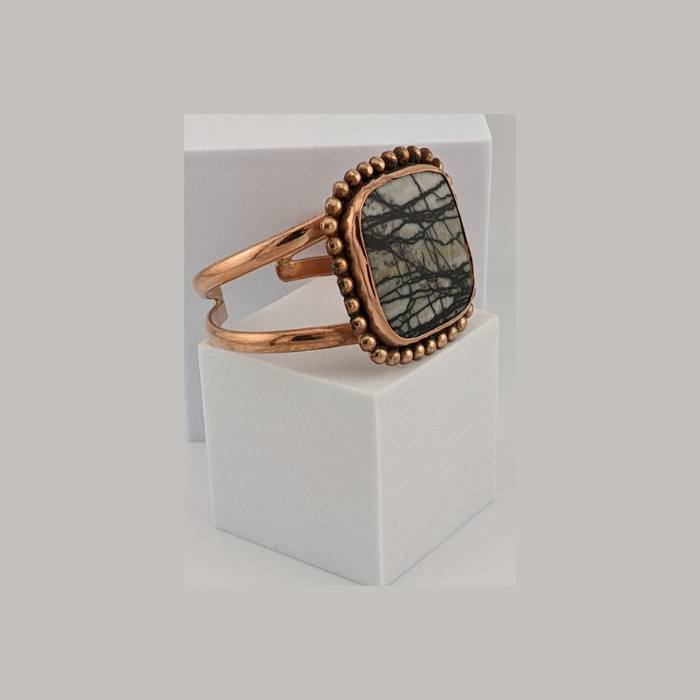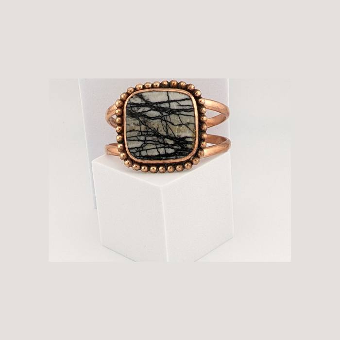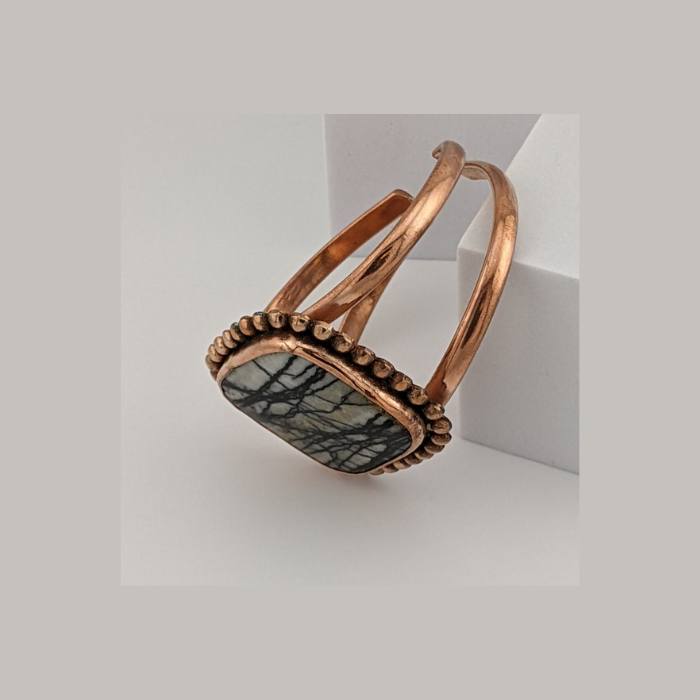 100% Solid Copper & Authentic Black Rutile Gemstone Cuff Bracelet