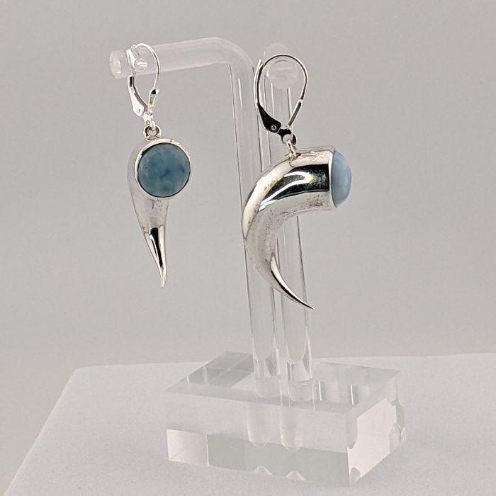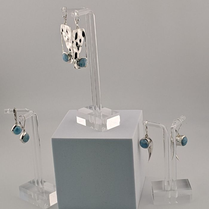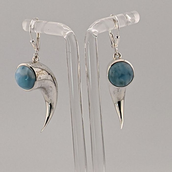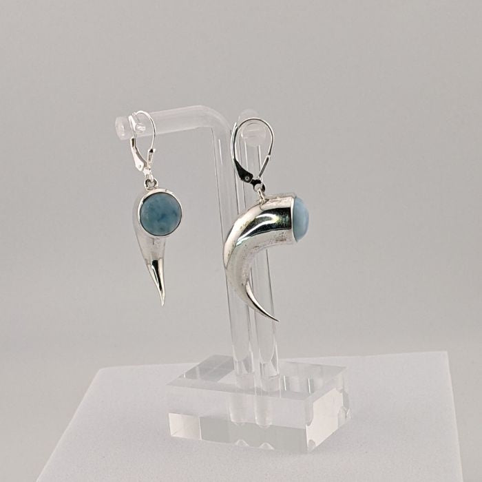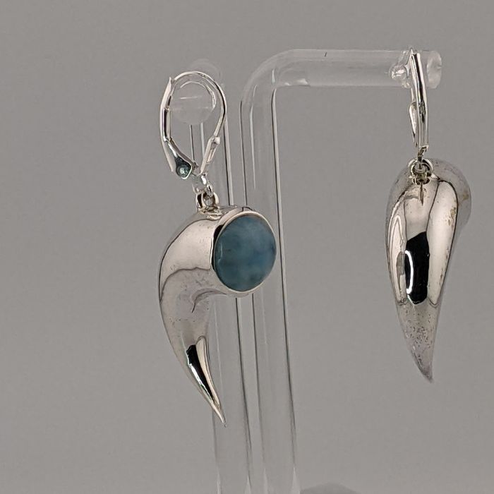 "Hooks of Hope," are a unique bohemian earring design with 10x10mm Larimar stones set in .925 sterling silver, that are intended to promote healing and peace. These exquisite, two-inch-long pieces, have safe lever-back ear hooks, that stand for support and connection in the battle against child trafficking.