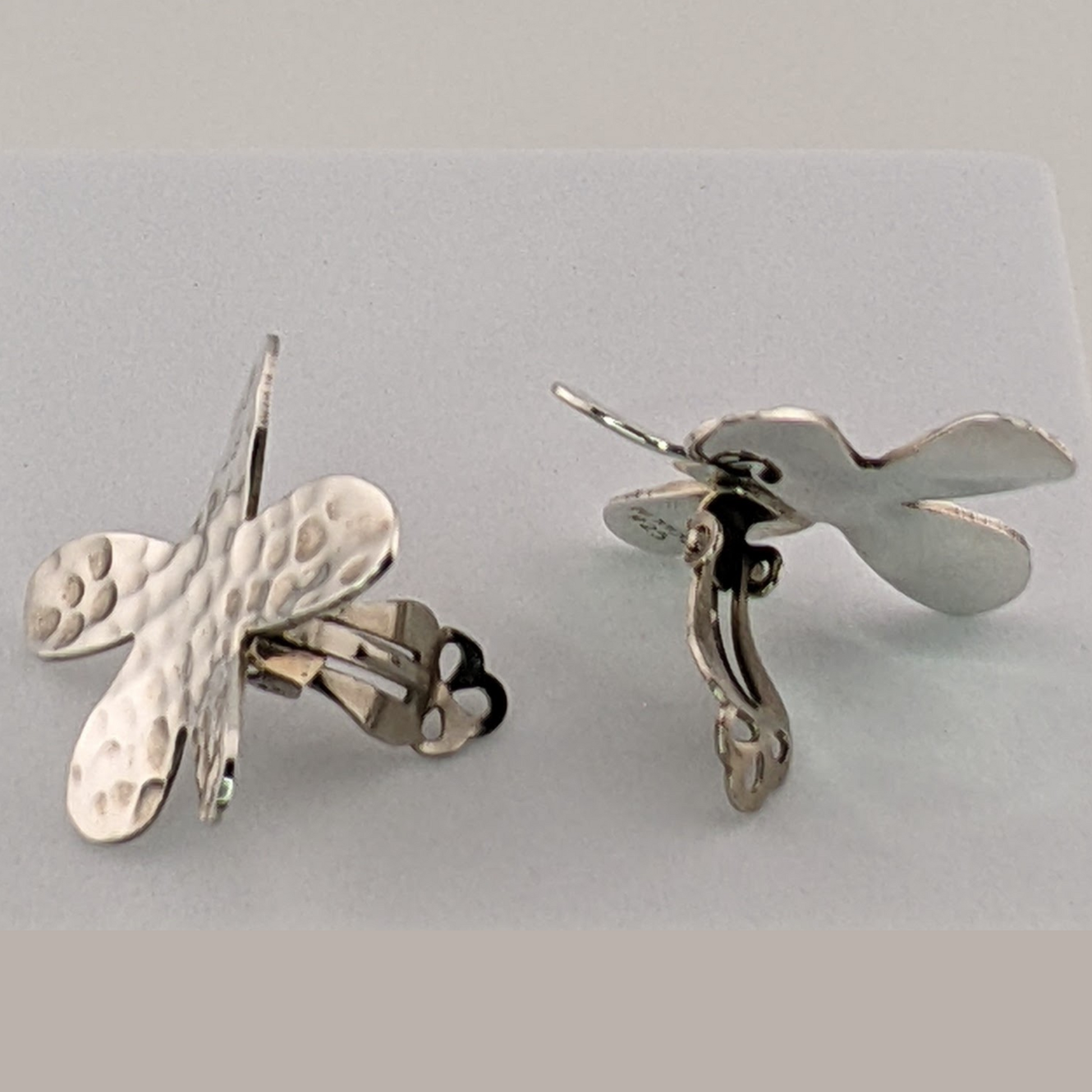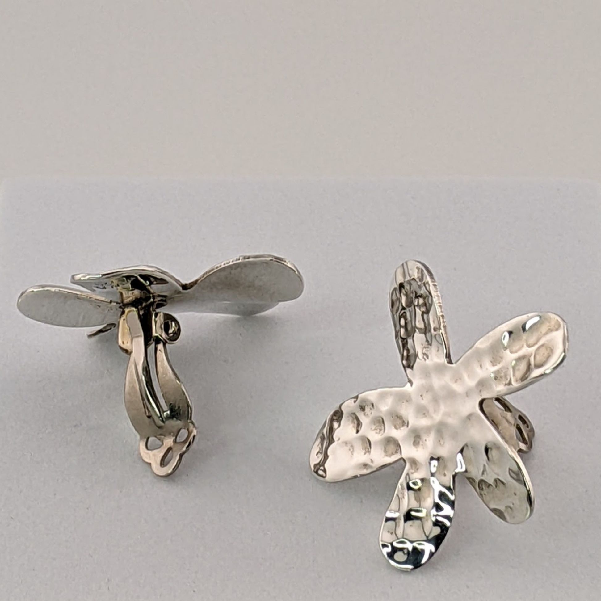 Hammered Sterling Silver Five-Leaf Flower Clip-On Earrings