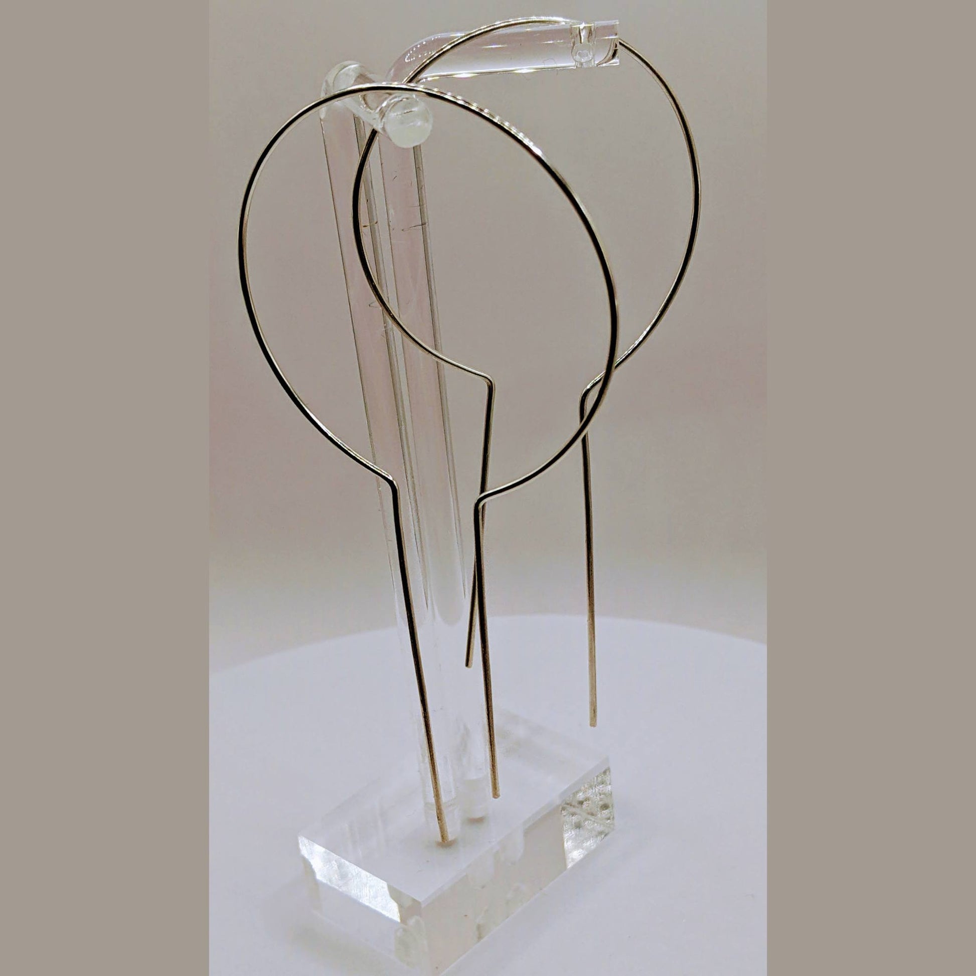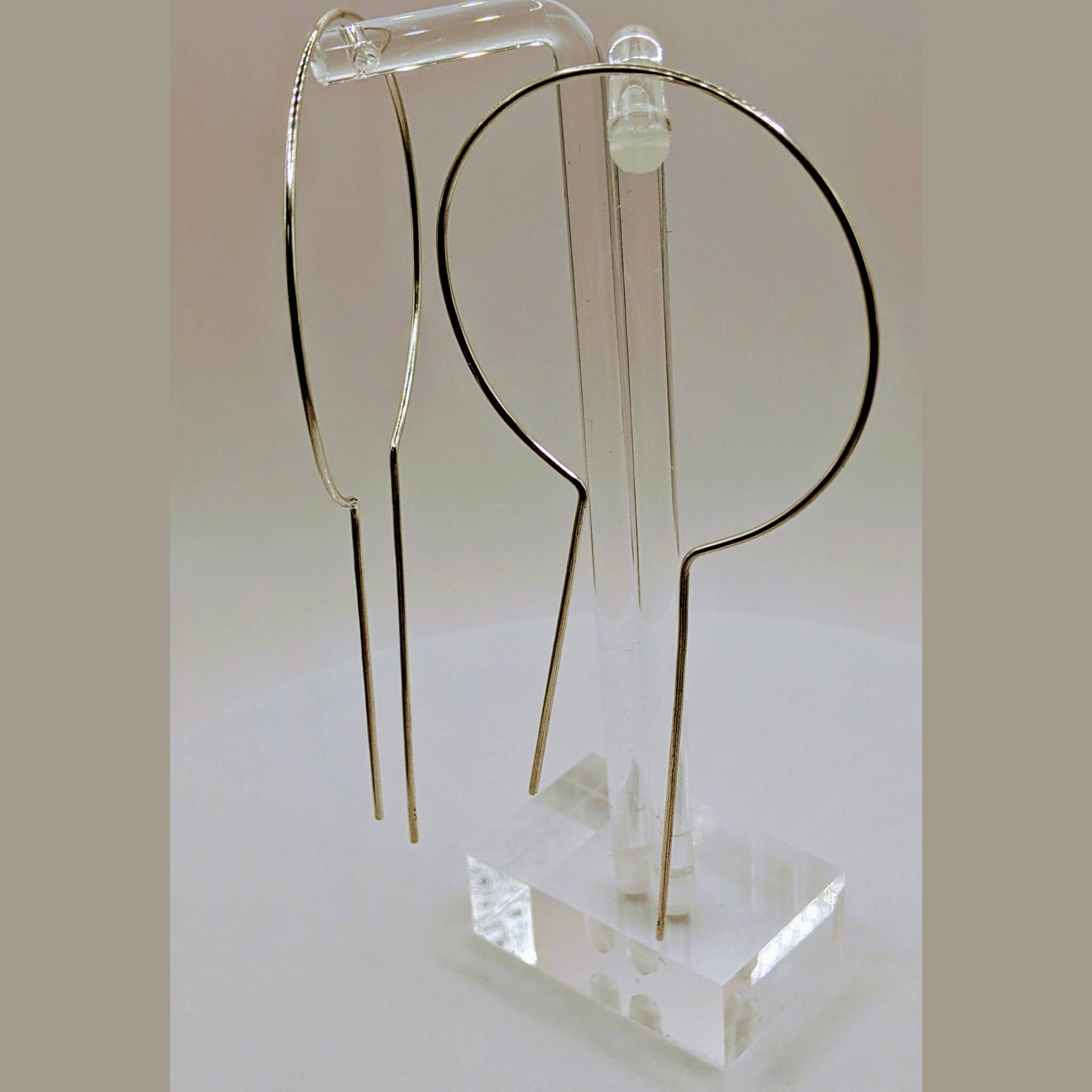 The meticulously crafted 18-gauge sterling silver corkscrew-shaped earrings, each measuring 4.5" in length. These elegant designs not only hold their exquisite form but also effortlessly glide through your earlobe's pierced hole, ensuring a comfortable and secure fit while adding a touch of artistic flair to your look.