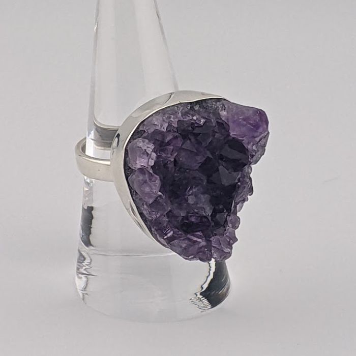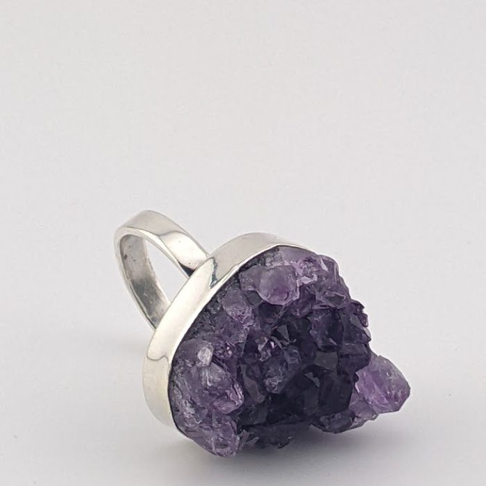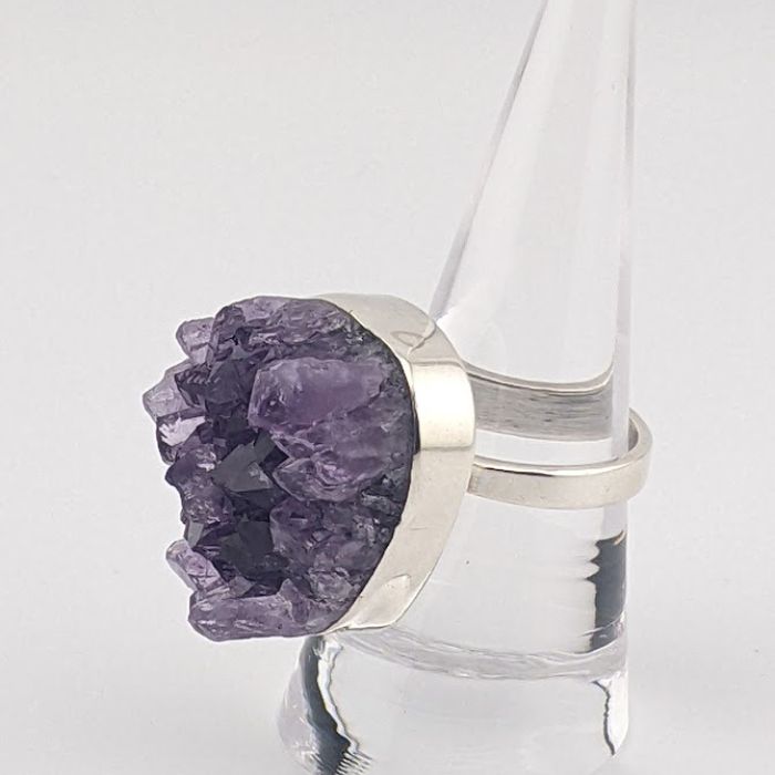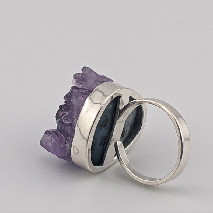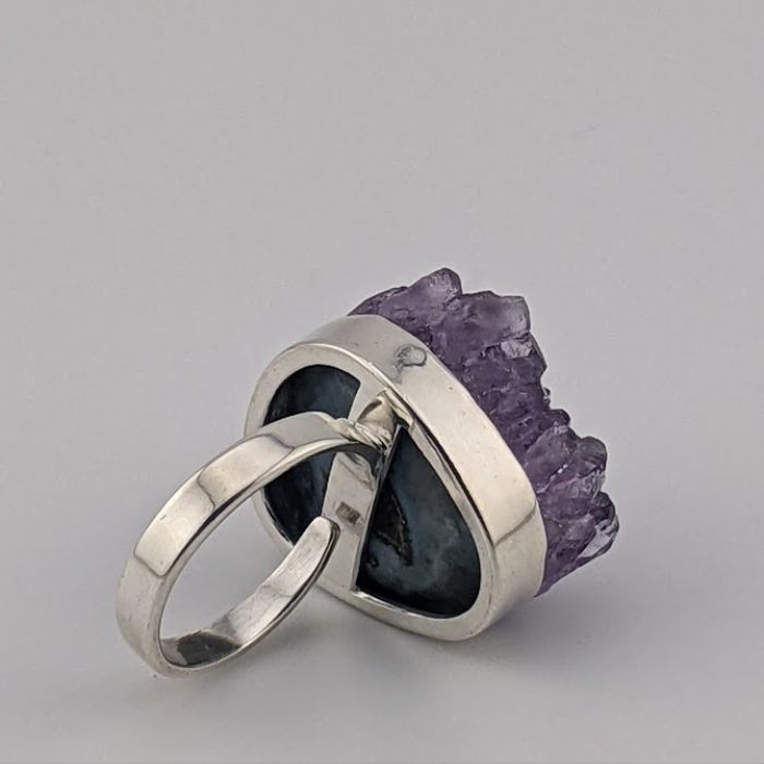 Authentic Amethyst Geode Crystal & 925 Sterling Silver Ring