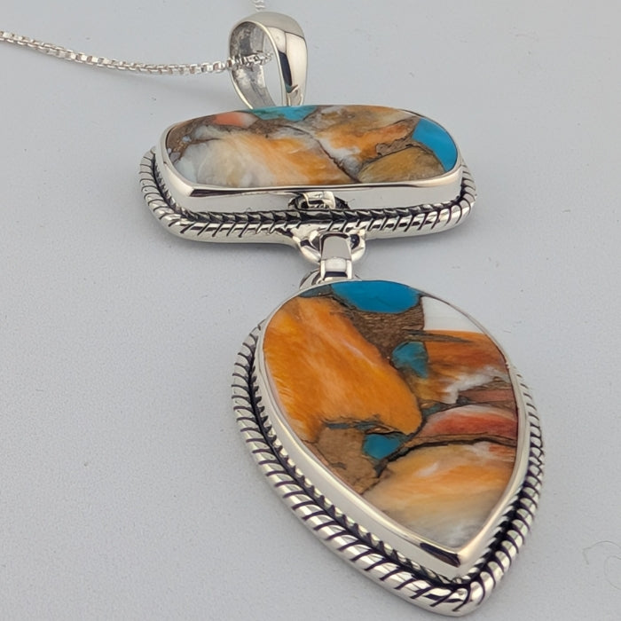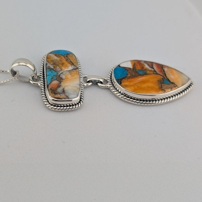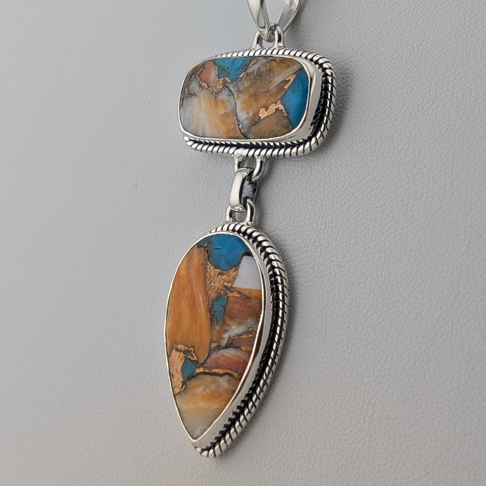 Oyster Turquoise and Sterling Silver 2 Stone Drop Necklace