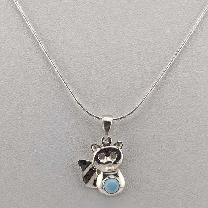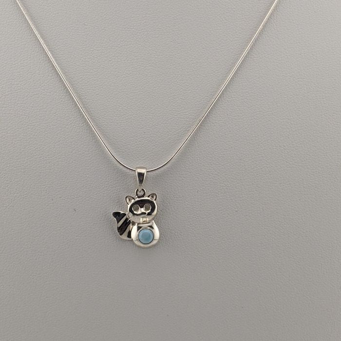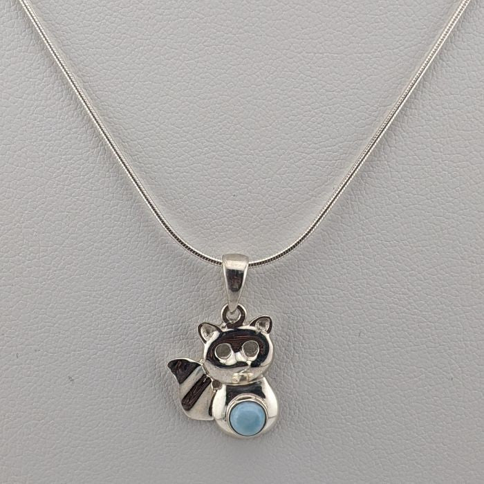 Larimar and Sterling Silver Teddy Bear Cat Pendant Necklace