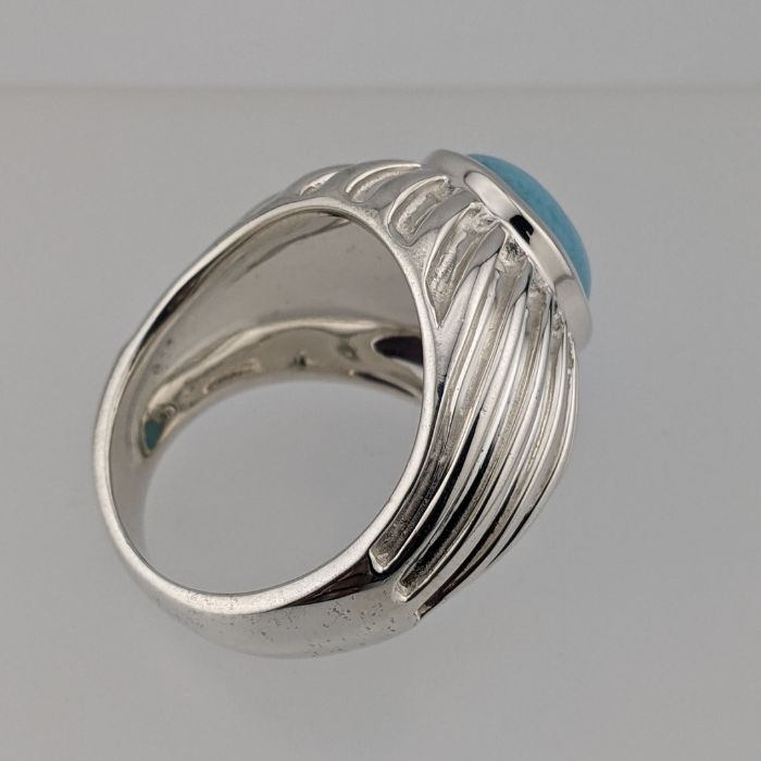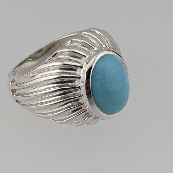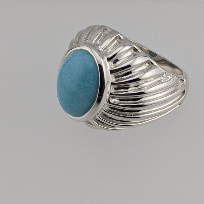 Larimar and Sterling Silver Dome Shape Ring (For Men & Women)