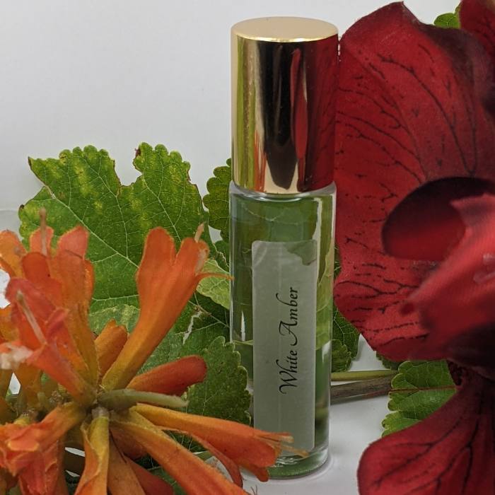 A gorgeous amber scent that is clear, light, delicate, clean and fresh, with a hint of musk in the background. WHITE AMBER waffles (moves gently through the air) as you walk, sit and stand.