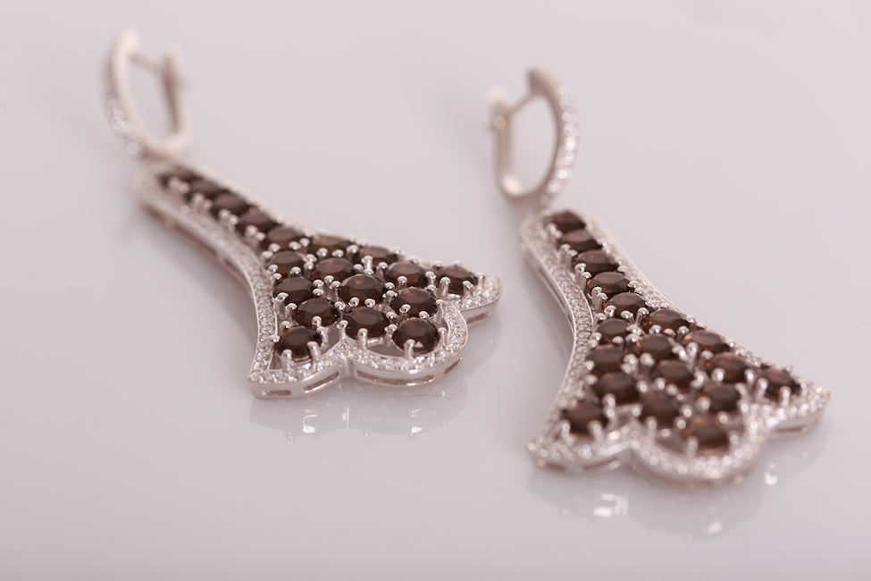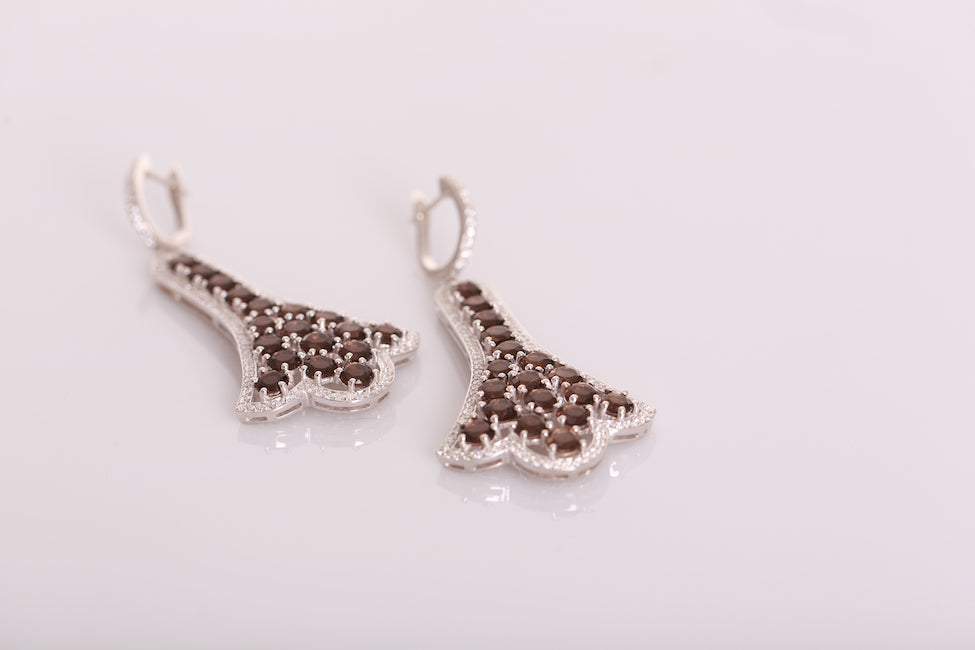 * Faceted Precise Cuts of Smoky Quartz, Fine Pieces of Clear Crystals & Sterling Silver Earrings
