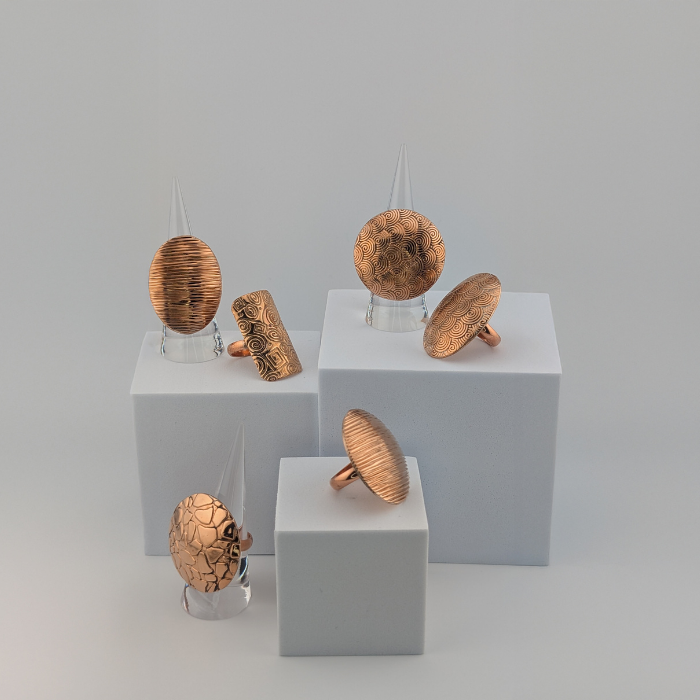 The Yamo "MOSAIC" Round Wind Ring is a striking 1.5” x 1.5” copper sun disc, intricately patterned with a mosaic-inspired design that mirrors the harmony of fragmented beauty carried by the wind. Handcrafted in 100% copper and fully adjustable (sizes 5.5–10), this radiant piece is a bold fusion of structure, spirit, and timeless artistry.